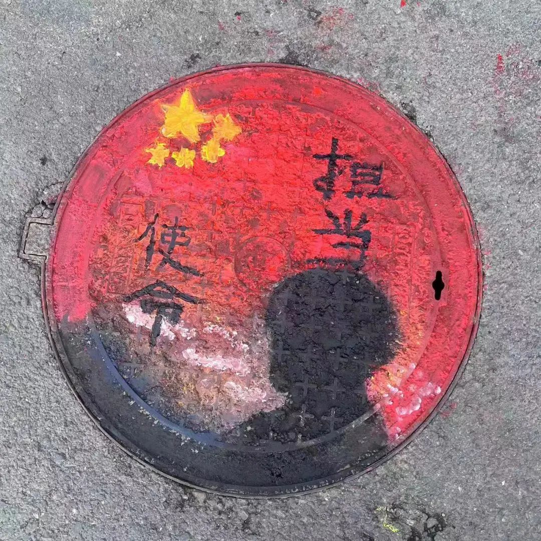 志愿者们拿着画板和清理工具化身成一个个“小艺术家”以环保为主题对学校的井盖进行清洗和绘画。一次次的清理、一次次的上色,无不显露着我院学子的工匠精神,志愿者们精诚合作,乐此不疲。经过一上午的辛勤劳动,完成了多处井盖的清理和彩绘,路面焕然一新,志愿者们的表现获得了老师们一致点赞。