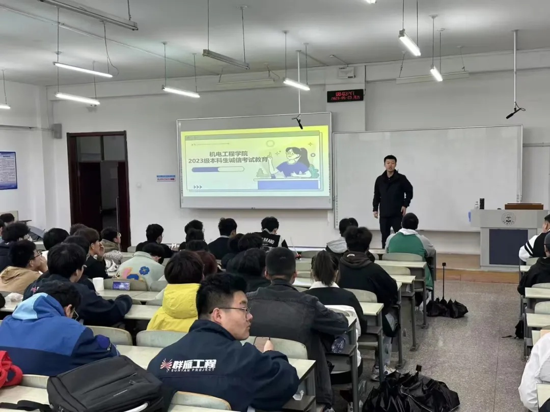 为进一步弘扬诚信考试精神,营造风清气正的考试环境,机电工程学院于5月21日成功举办了考试诚信教育大会,由各年级辅导员老师进行考试诚信教育。此次会议旨在强化学生的诚信意识,推动学院学风建设再上新台阶。