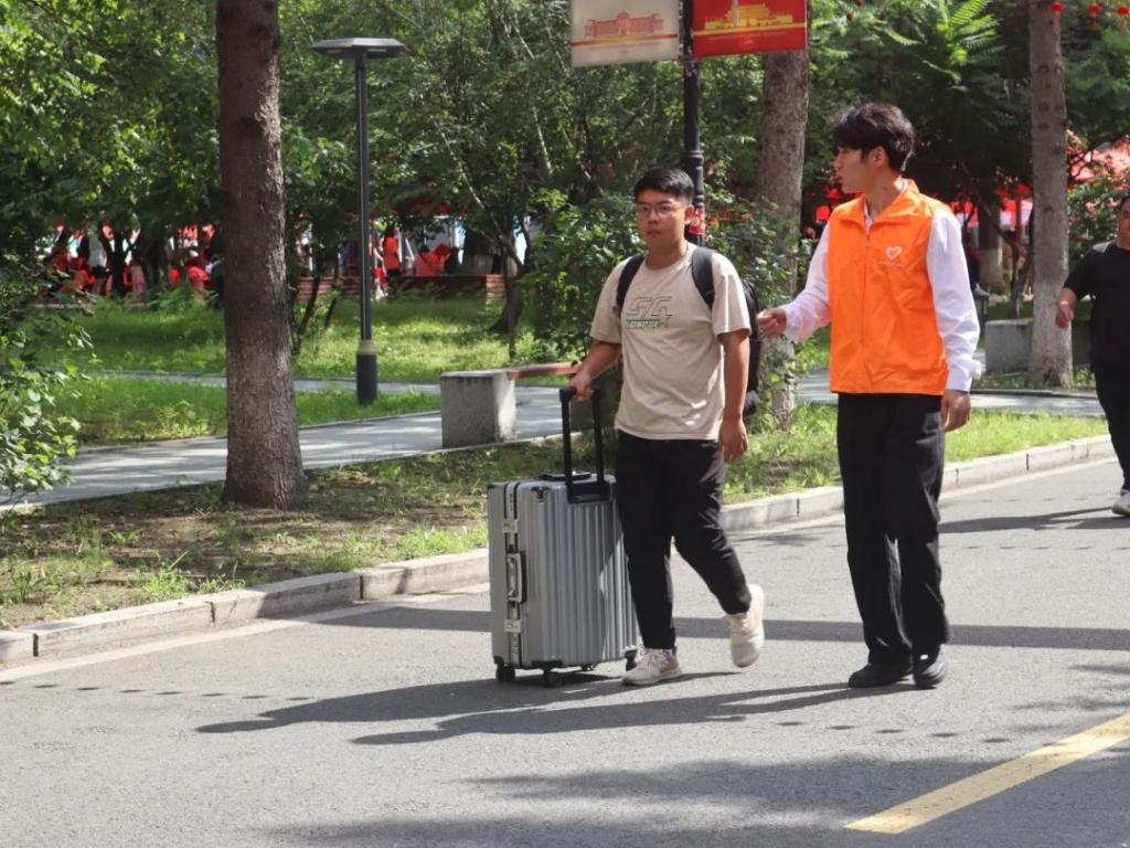 八月的校园,阳光依旧灿烂,绿树成荫。校园里到处洋溢着迎接新生的热情氛围。各学院的迎新帐篷整齐排列,志愿者们早早地等候在此,准备为新生们提供周到的服务。