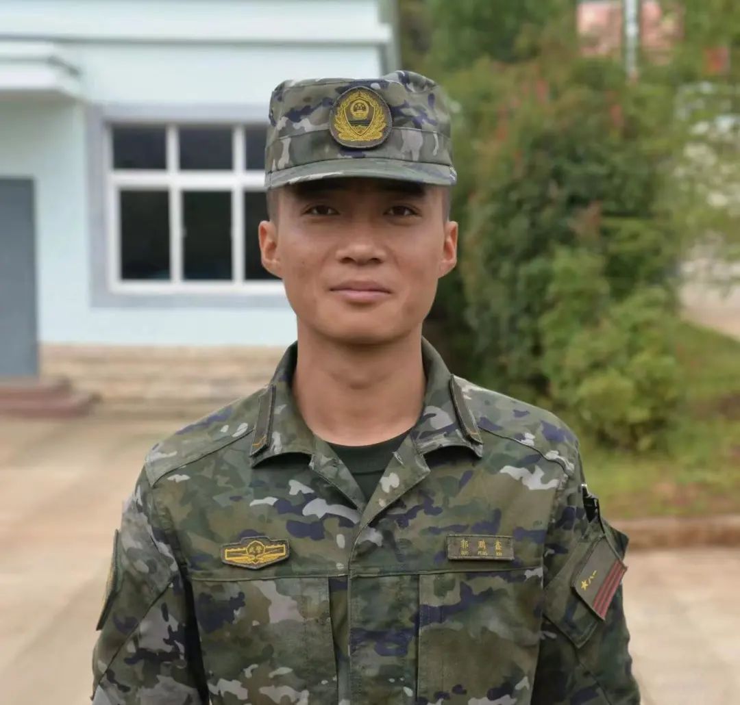 郭鹏鑫,宁夏银川人,2021年9月入学,2022年3月入伍,2024年3月退役复学,现就读于吉林化工学院机电工程学院机械设计制造及其自动化专业。曾获“校三等奖学金”。他曾服役于武警云南总队某机动支队侦察中队。该中队有着光荣的历史,在对越反击战中被中央军委授予“攻坚英雄连”荣誉称号。他在新训期间三次荣获“训练标兵”,下连后,荣获“四有优秀士兵一次”,“嘉奖”一次。