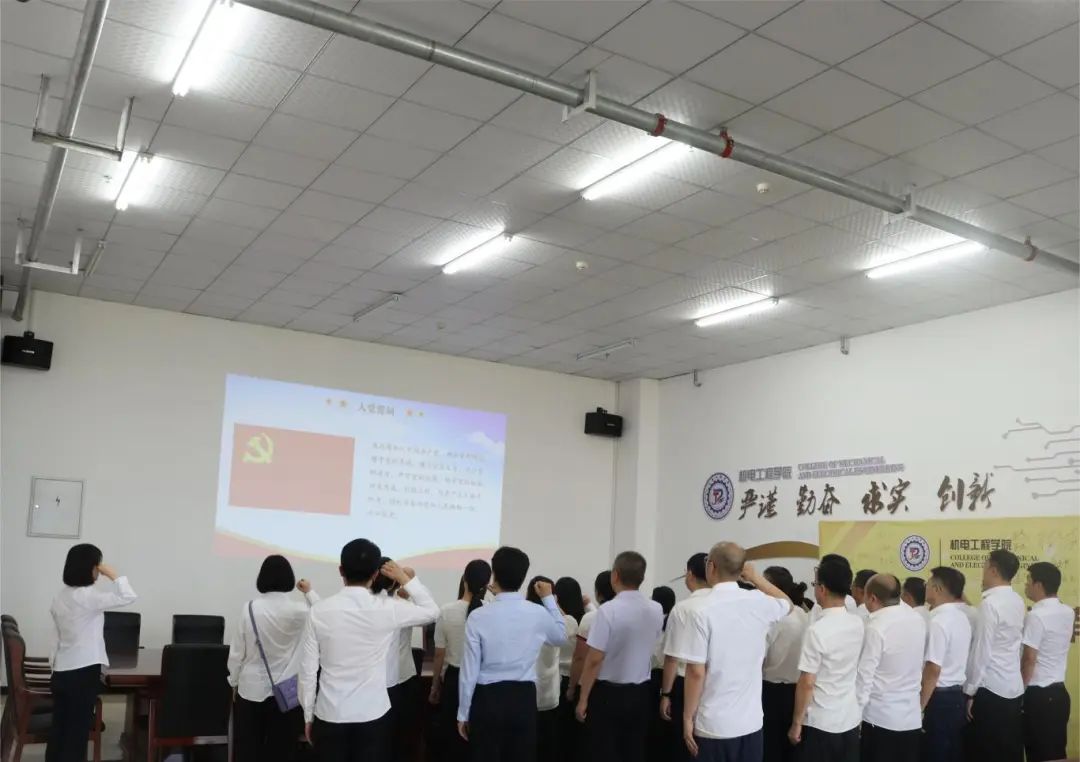 为扎实做好我院党员发展工作,培养党员责任意识,进一步提升党组织的战斗力和凝聚力。6月26日在党支部的组织下,机电工程学院全体教职工党员在宣誓入党誓词后,前往校史馆进行参观。