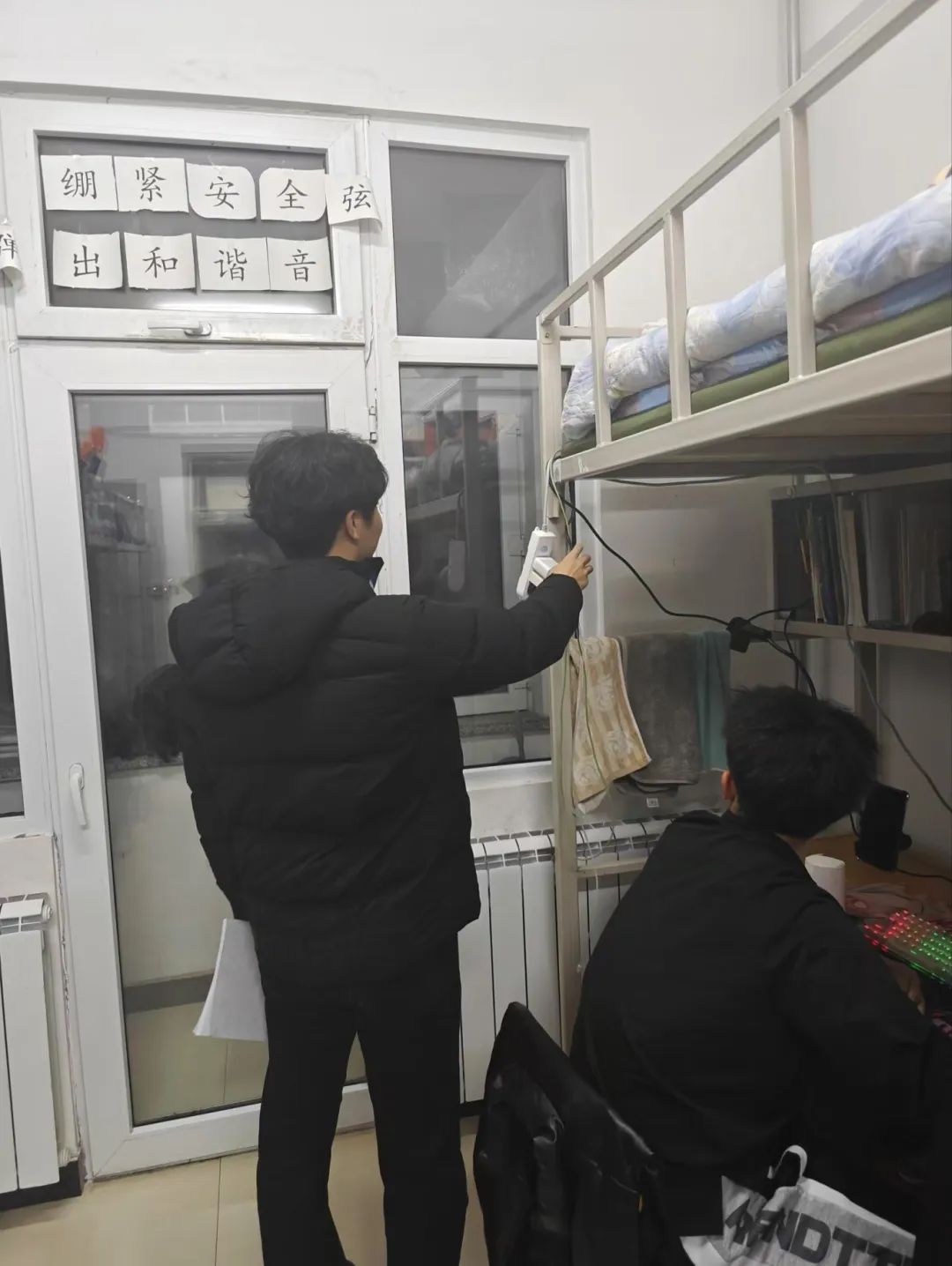 生活部深入学生宿舍逐一进行检查,对于用电安全、物品堆积、消防通道占用、安全出口堵塞等进行了细致的排查,同时重点排查了宿舍内使用大功率电器、乱接乱拉电源插座等安全隐患问题。
