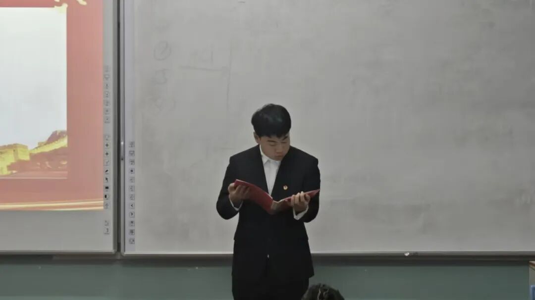 国歌仪式结束后,王吉凯同学上台宣读校团委关于召开我院第六届学生代表大会的批复文件。文件中,校团委对我院本次学代会的筹备工作给予肯定,明确同意大会召开及相关议程安排,为大会的规范推进提供了重要依据,也让全体代表更加清晰会议的合规性与重要性。