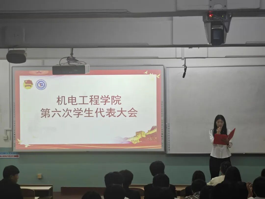 金秋启新章,青春正当时。为进一步推进学生会组织工作,明确学生代表履职方向。9月19日18时,机电工程学院在第一教学楼309教室召开第六次学生代表大会,团委书记王丽贺老师出席指导,分团委学生会全体成员参加,过控2302班池香砚同学主持。
