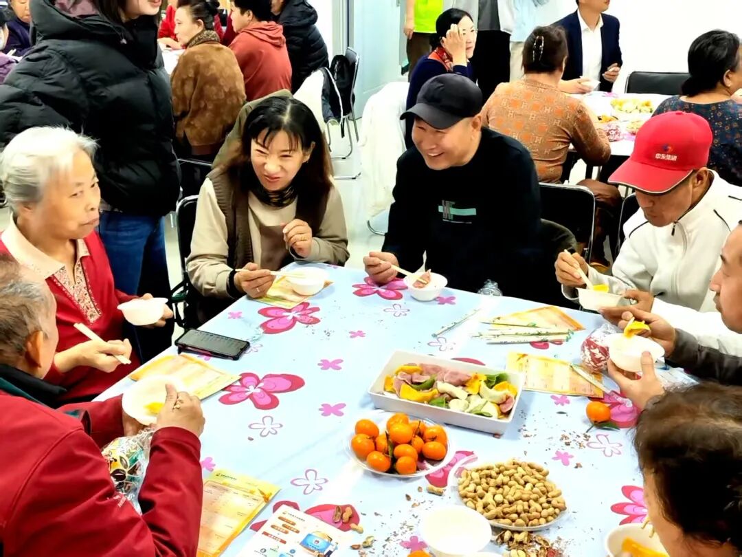 当一碗碗热气腾腾的五彩饺子端上桌,活动室里暖意融融。志愿者们穿梭于席间,细致地为老人们添醋、盛汤,让大家在立冬时节感受 “家” 的温暖。老人们围坐在一起,品尝着色泽鲜艳、口味鲜美的饺子,脸上洋溢着满足的笑容,纷纷为活动点赞,直言 “这饺子包的是美味,更是真情”。