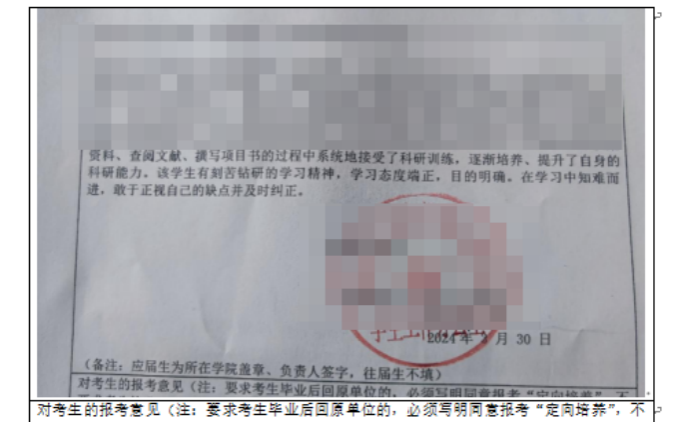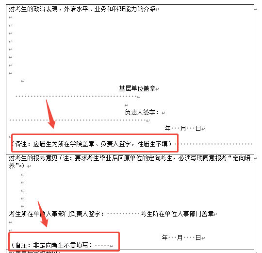 应届需要盖章的同学,应把这一页打印出来,去找相关部门,写评语,签字盖章之后,再用手机拍下来,把这个格剪切,粘贴在电子版的表的相应位置,效果如下图。