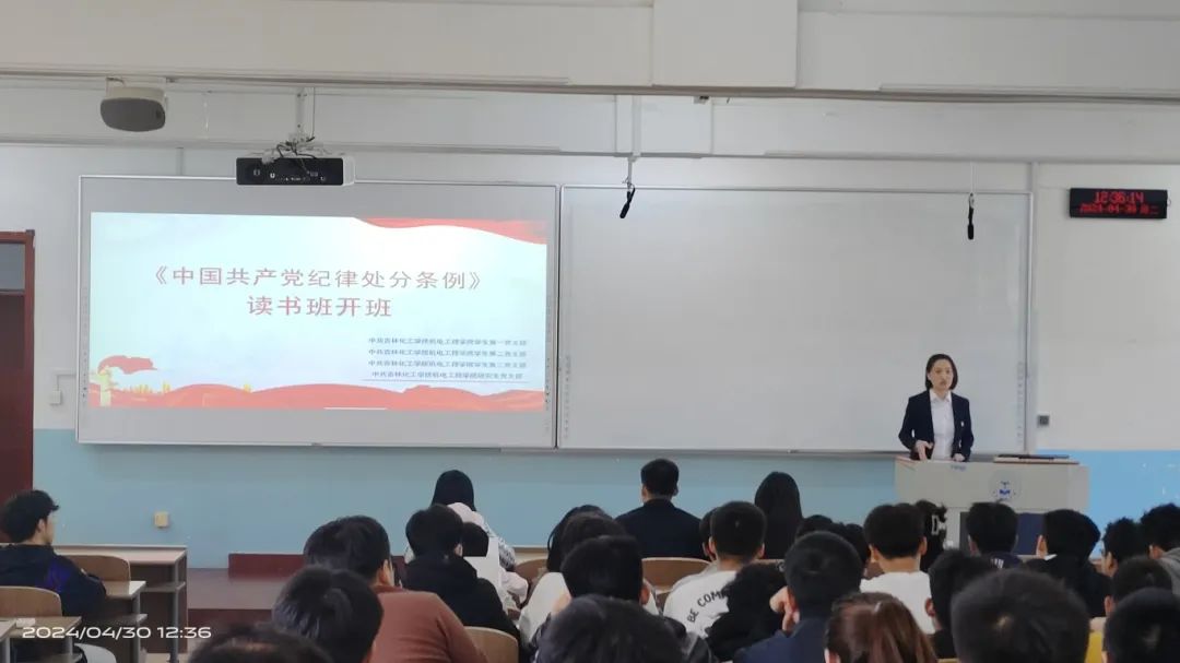 为深入学习贯彻习近平总书记有关重要论述、深入学习贯彻新修订的《中国共产党纪律处分条例》,按照党中央统一部署,根据学校党委、学院党委的党纪学习教育工作安排,机电工程学院学生党支部于4月30日在1-309举行《中国共产党纪律处分条例》读书班开班仪式。开班仪式由机电工程学院研究生党支部王丽贺主持,学生支部全体党员参加。